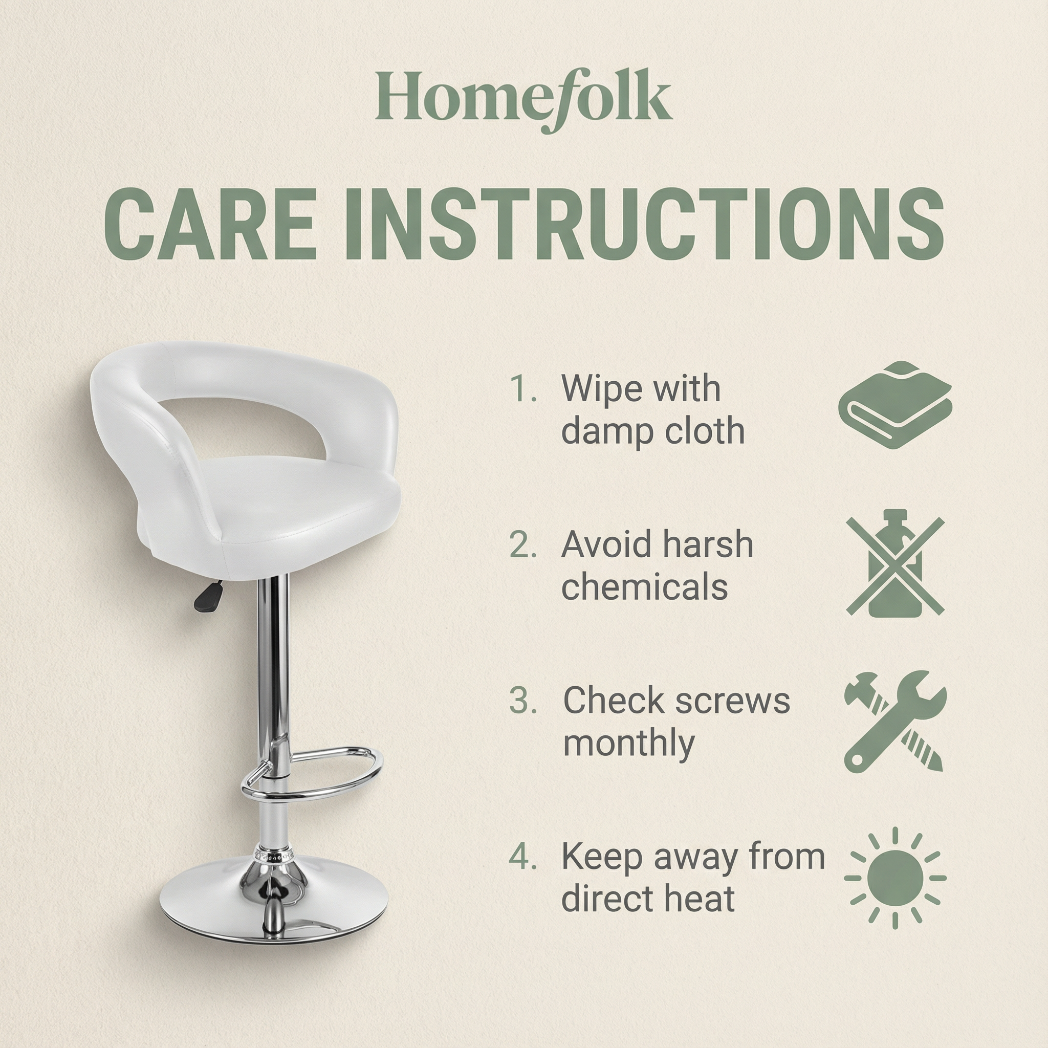 Home Folk™ Bar Stools are crafted with a high-quality chrome stainless steel base, reinforced tubular construction, and durable PU leather seating for long-lasting everyday use. This solid build delivers stability, strength, and a premium feel that outperforms cheaper alternatives.