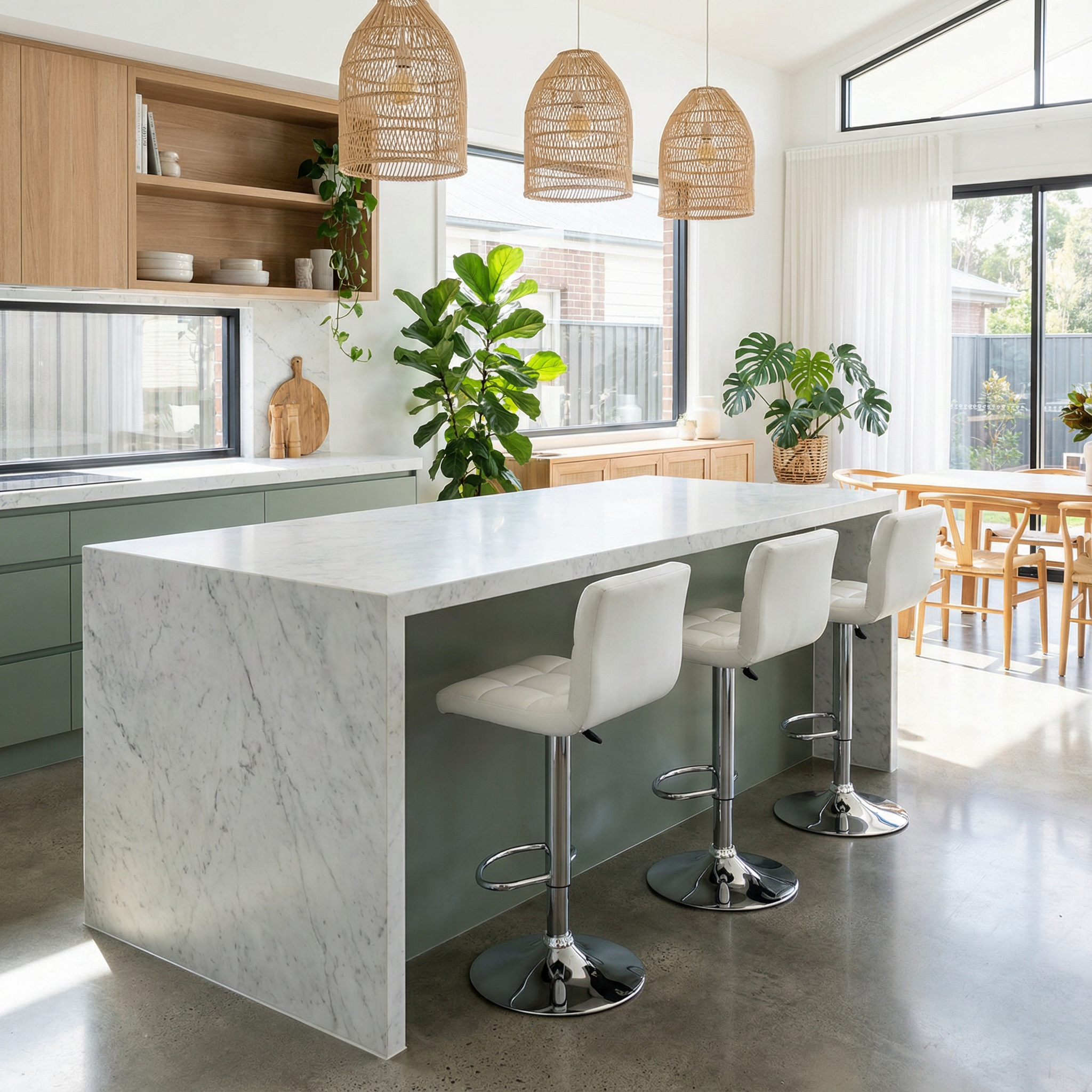 Each stool features a polished gas lift mechanism that allows you to adjust the height effortlessly to suit different bench and bar heights. This makes the stools versatile enough for kitchen islands, breakfast bars, and home entertaining spaces.